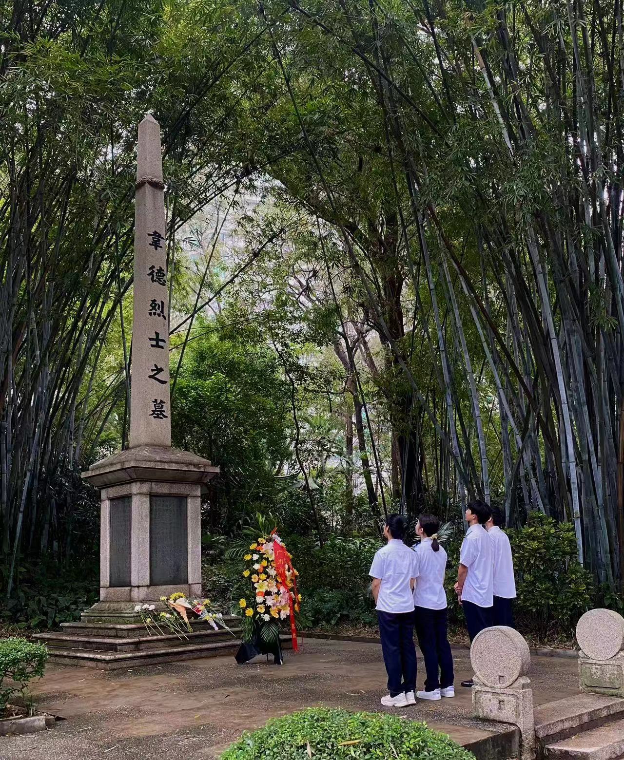 (校团委供稿)习近平总书记在党的二十大报告中勉励寄语广大青年,坚定不移听党话、跟党走,怀抱梦想又脚踏实地,敢想敢为又善作善成,立志做有理想、敢担当、能吃苦、肯奋斗的新时代好青年。松柏苍翠映黄花,丰碑矗立忆英魂。2023年4月5日下午,为表达对革命先烈、民族英雄与前辈楷模的哀思和怀念,激励青年铭记红色历史、继承光荣传统,团委组织我校17名学生来到广州市黄花岗七十二烈士墓园,开展“缅怀革命先烈,赓续红色基因”清明祭扫活动。