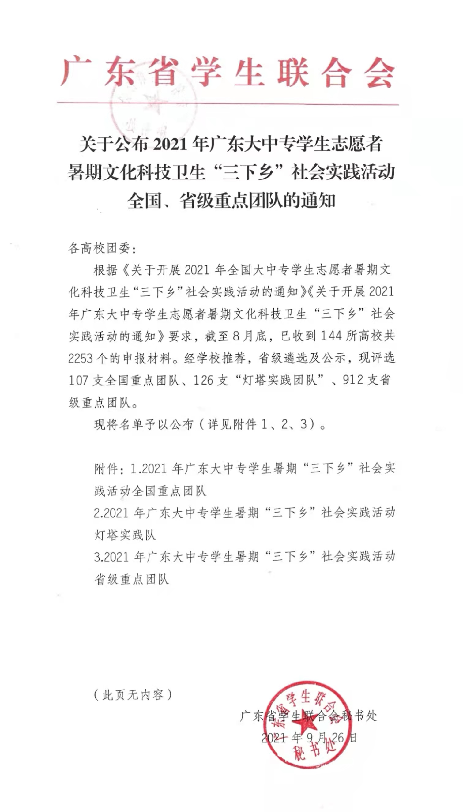2021年广东大中专学生暑期“三下乡”社会实践活动省级重点团队 |