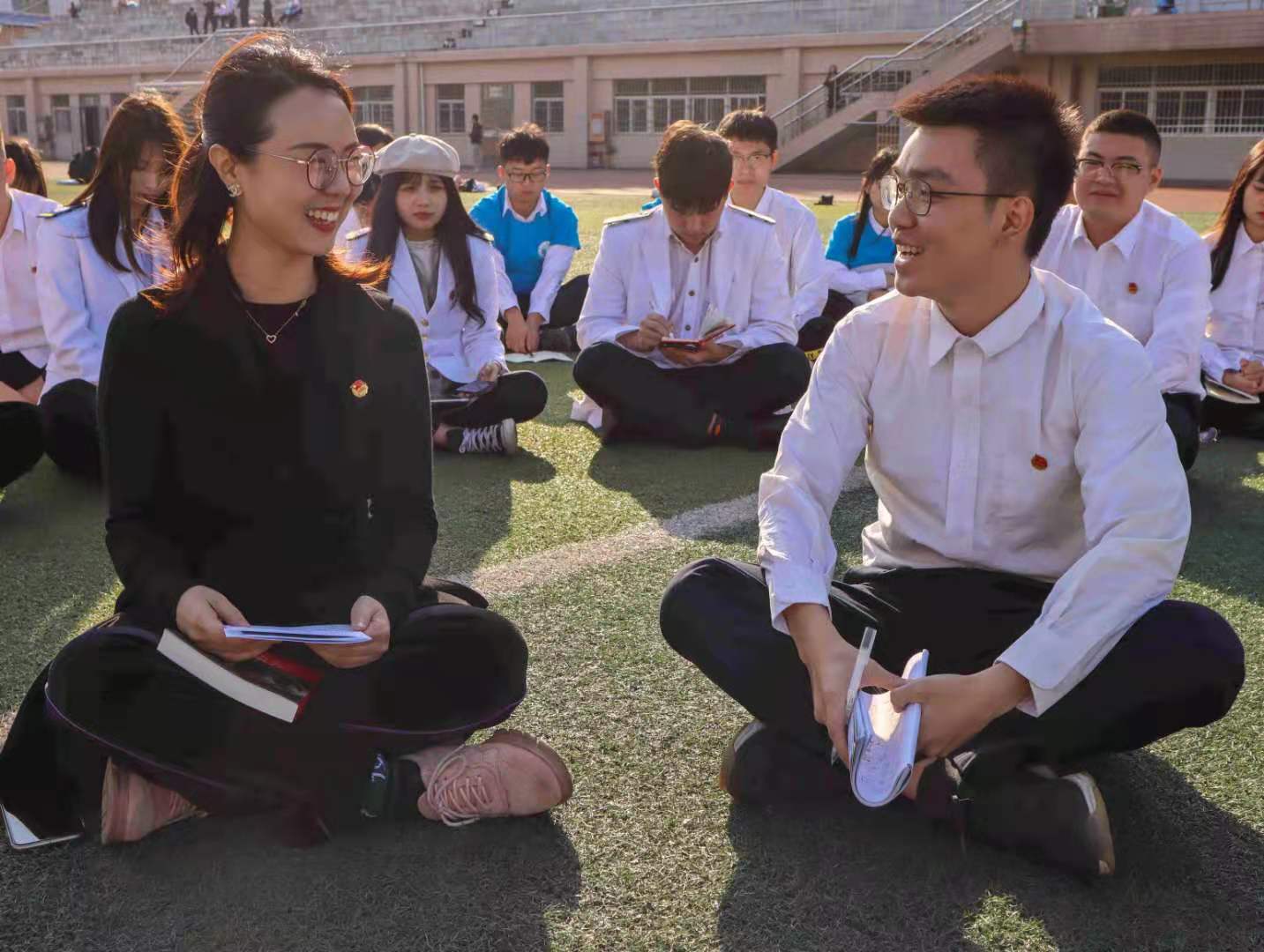12月3日下午,学校团委倾力打造的全新思想引领品牌“草地读书汇”首期活动在我校操场大草坪圆满举办。学校第4期青马班学员78人围坐在草地上,面对面学习阅读了《习近平与大学生朋友们》系列采访实录,以一种全新的方式,开展了一堂生动的学习分享会。
