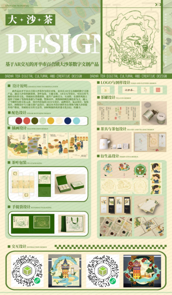 学校师生团队充分发挥专业优势,深入开平等地开展实地调研,将世界文化遗产资源与红色文化、侨乡文化相结合,探索出“校地共建-资源转化-长效反馈”的“塘口模式”,具有积极的实践推广意义。活动曾获中国日报、CCTV等多家主流媒体广泛报道,产生了良好的社会反响。本次大赛学校获奖作品巧妙地将开平的茶文化、碉楼文化、侨乡文化、旅游资源、农产品与AR交互技术、IP形象设计、红色旅游相结合,通过艺术作品创作和红色旅游线路设计,为开平的旅游发展注入新的文化动能。