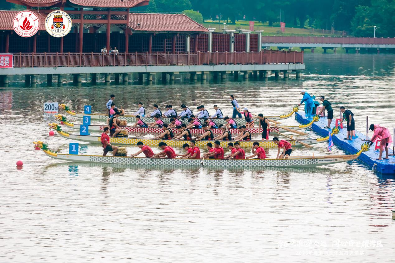 本次赛事由佛山市委台港澳工作办公室、广东省龙舟协会、粤港澳大湾区体育教育与发展联盟联合举办,汇聚了华南师范大学、南方医科大学、佛山大学、香港浸会大学,澳门大学、澳门理工大学、澳门城市大学等14支高校龙舟队伍。本次龙舟邀请赛采用200米与500米直道赛双项积分制。在阵阵催人奋进的锣鼓声中,各支参赛龙舟队展开了激烈角逐。广航院龙舟队学生们毫不畏惧,化压力为动力,展现了惊人的耐力和爆发力,与邻道对手展开贴身较量,最终以200米第四名,500米第六名将总成绩第五名的荣誉收入囊中,为学校争得了荣誉,展现了广航青年蓬勃向上的朝气和锐意进取的勇气。